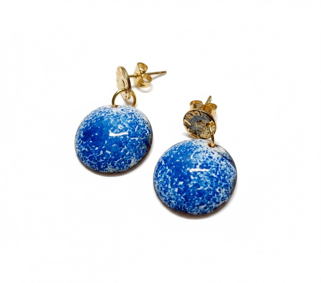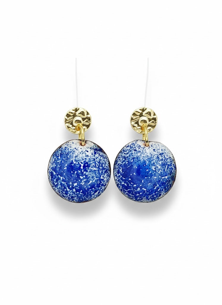 Erleben Sie die zeitlose Ästhetik Asiens mit unseren kunstvollen Ohrringen "Ming-Geheimnis" aus der Kollektion Emilia’s Emaille. Das tiefe, nächtliche Blau, durchsetzt mit feinen weißen Akzenten, erinnert an das kostbare Porzellan alter chinesischer Dynastien. Diese runden Schmuckstücke strahlen eine meditative Ruhe und gleichzeitig eine kraftvolle Eleganz aus. Jedes Paar wird in aufwendiger Handarbeit gefertigt, wodurch die einzigartige Struktur der Emaille entsteht – ein echtes Unikat für Liebhaber von Kunst und Kultur.