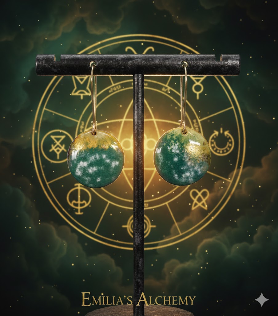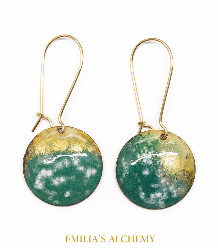 Emaille-Ohrringe "Alchemisten-Garten" – Runde Unikate von Emilia's Emaille