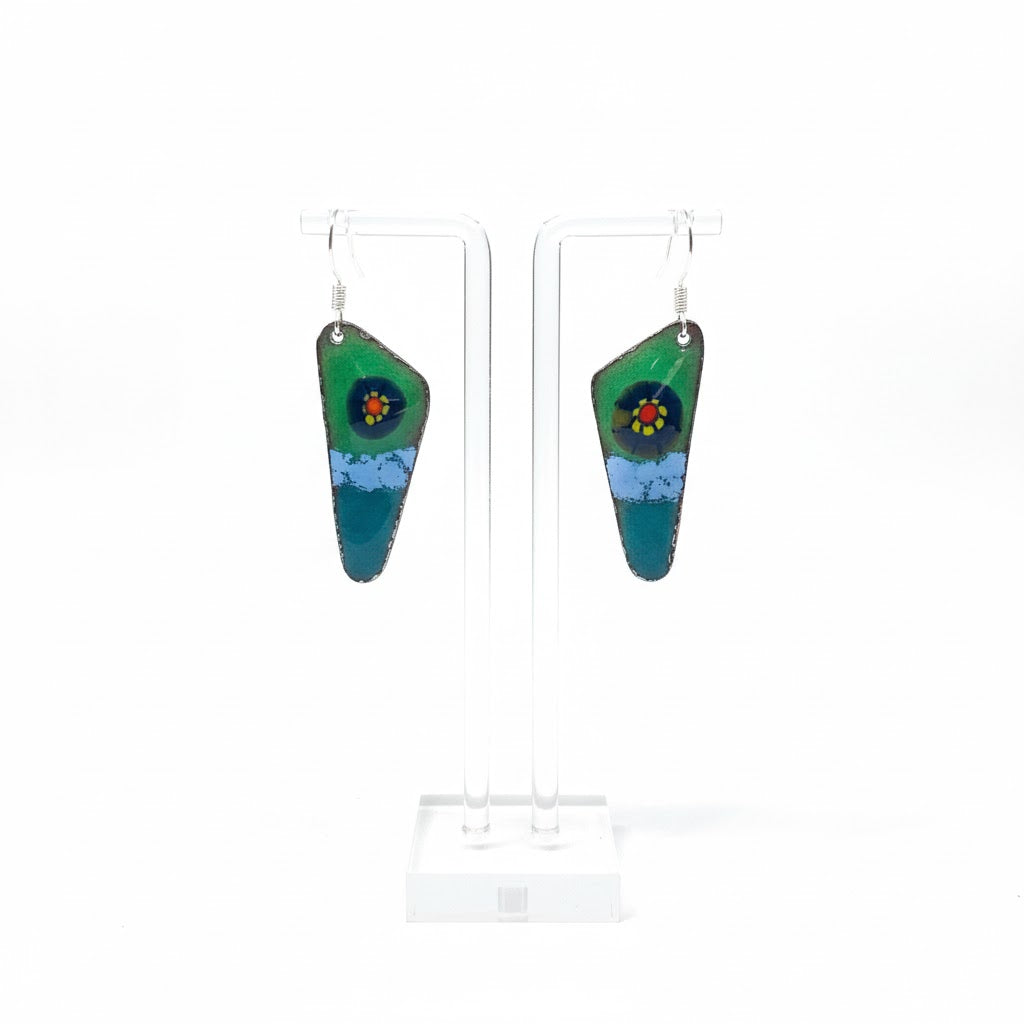 Handmade enameled copper earrings with hooks. The earring has a total length of 4.5 cm.