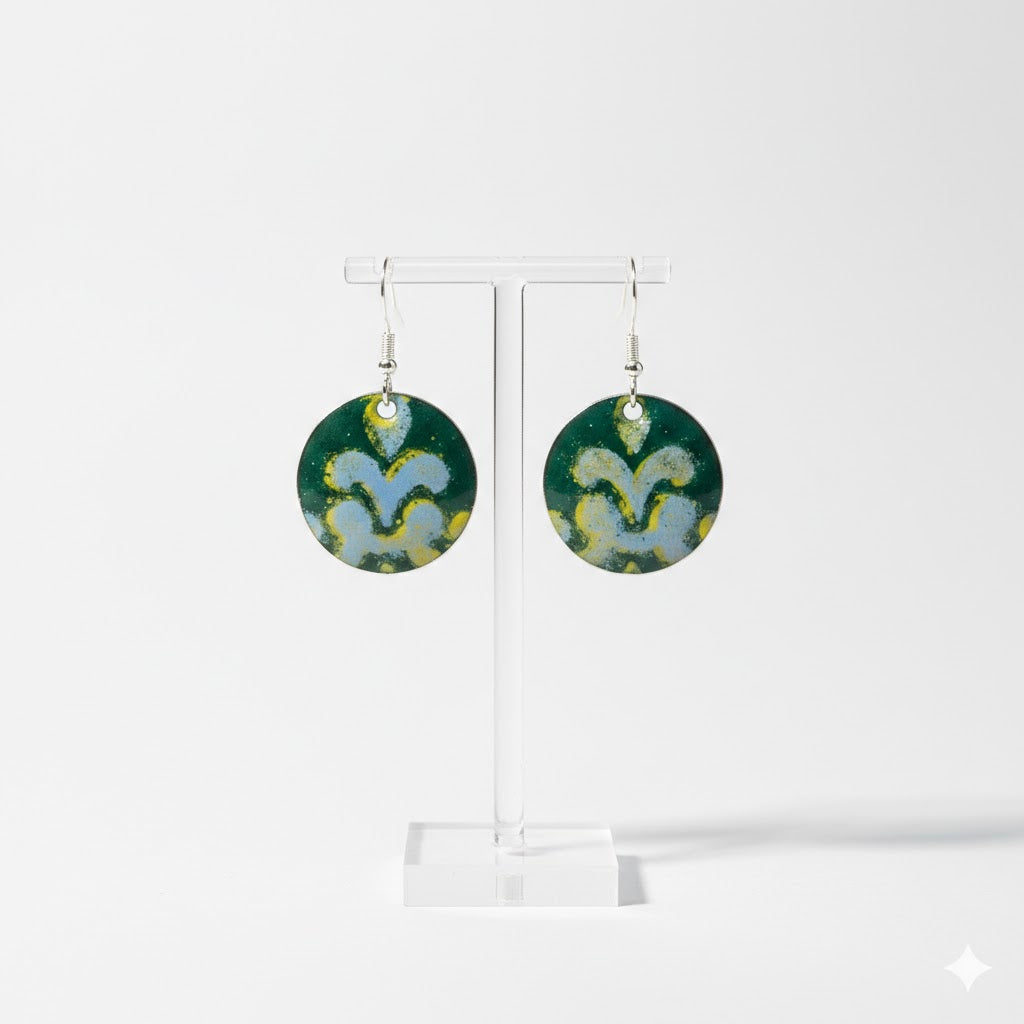 Enamel earrings "Tea Ceremony Green" from the Far Eastern Silk & Fire collection