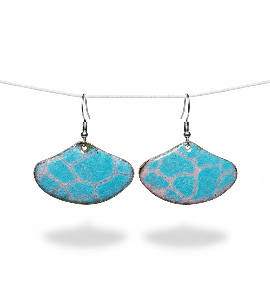 Tauchen Sie ein in die Anmut und Leichtigkeit des Rokoko mit unseren charmanten Ohrringen "Rosée Rococo" aus der Kollektion Emilia’s Emaille. Diese fächerförmigen Schmuckstücke, die an zarte Muscheln oder Blütenblätter erinnern, bestechen durch ihre himmlischen Türkis- und Blautöne, zart durchbrochen von subtilen Roséschattierungen. Sie spiegeln die verspielte Eleganz und die pastellenen Farbpaletten wider, die für die Kunst und Mode des 18. Jahrhunderts so charakteristisch waren. Jedes Paar ist ein liebevoll gefertigtes Unikat, das einen Hauch von historischem Charme und femininer Raffinesse in Ihre Garderobe bringt.