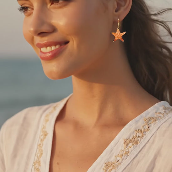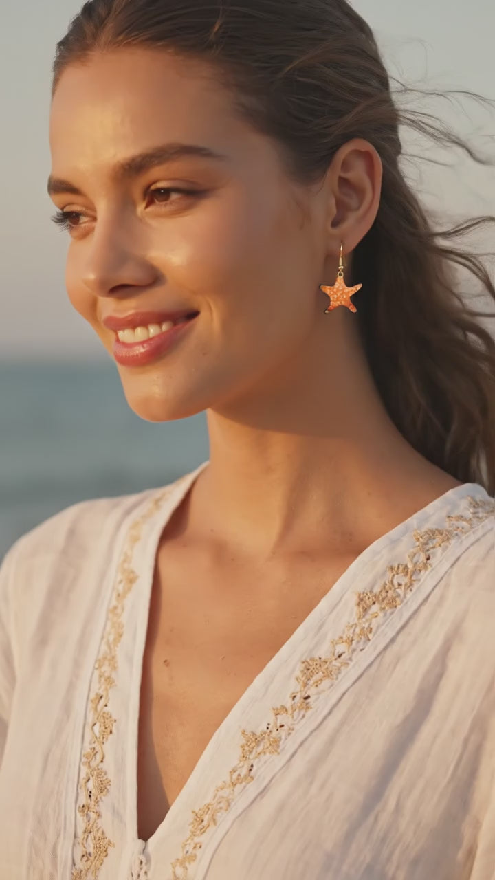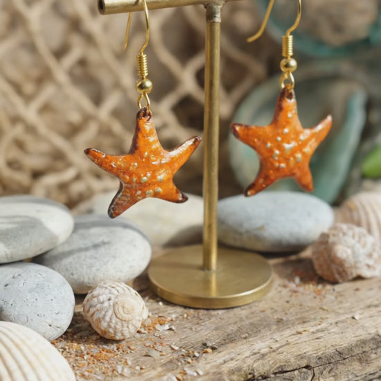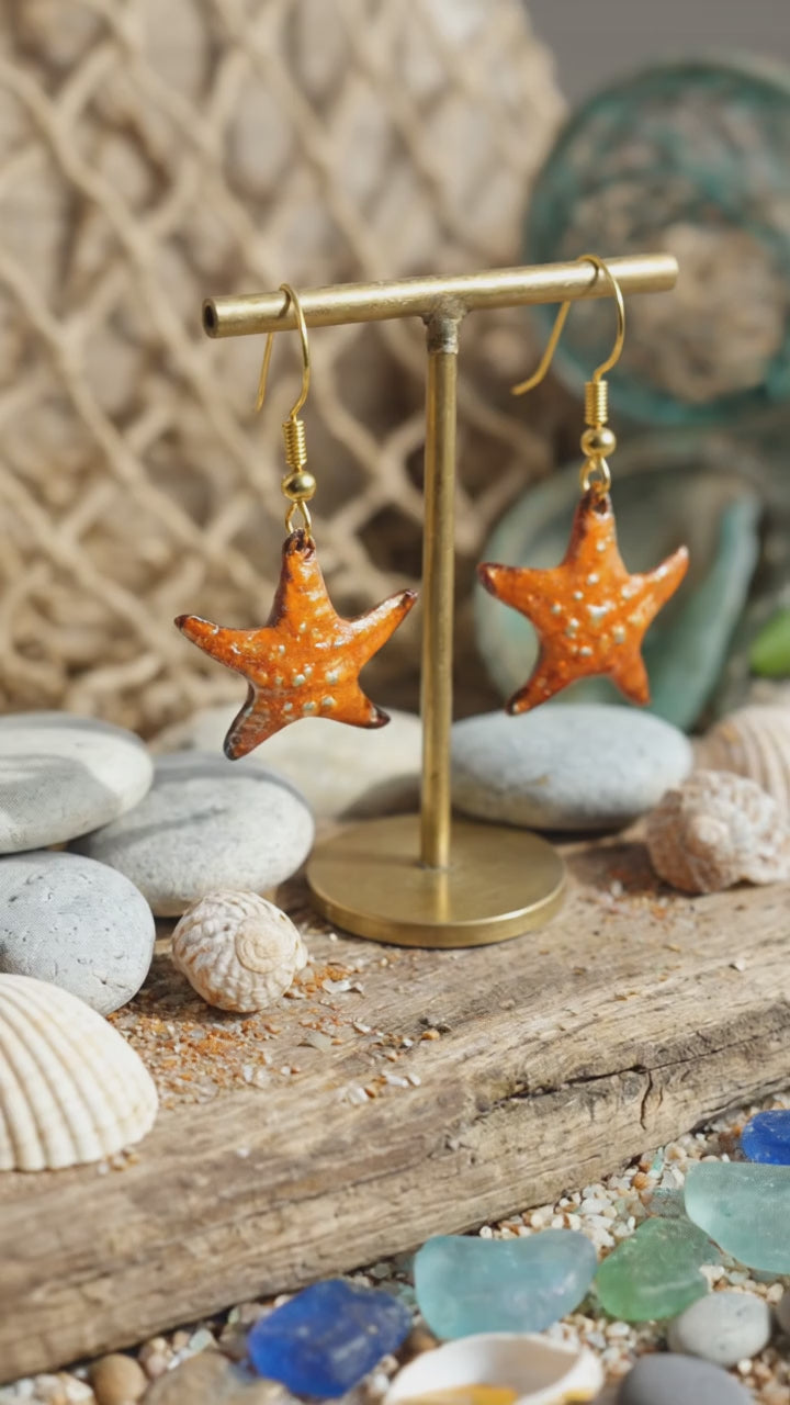 "Sonniger Seestern" – Handgefertigte Emaille-Ohrringe in leuchtendem Orange