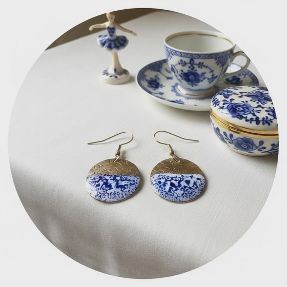 "Kobalt-Träume" – Exklusive Emaille-Ohrringe im Stil feinsten Porzellans
