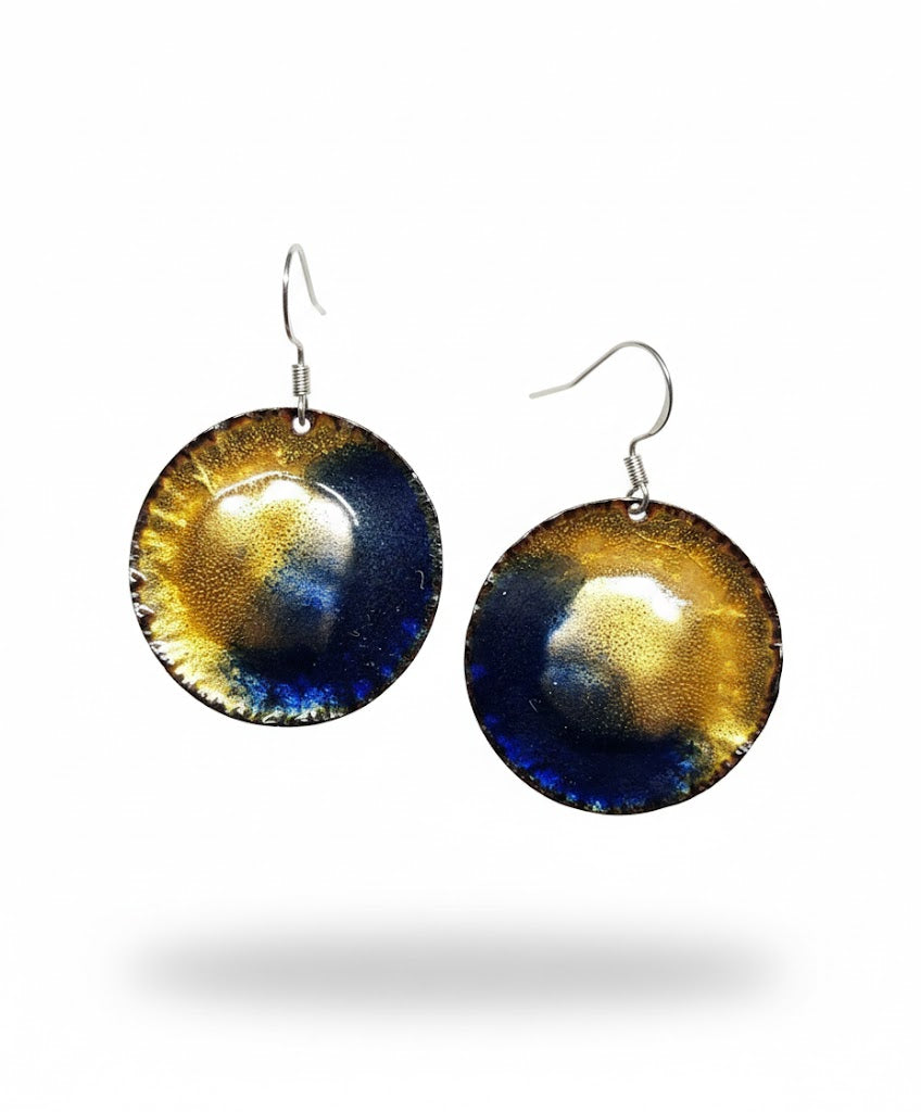 Tauchen Sie ein in die geheimnisvolle Welt der Pharaonen mit den Ohrringen "Auge des Ra" aus der exklusiven Kollektion Emilia’s Emaille. Diese handgefertigten Schmuckstücke bestechen durch ihr einzigartiges Design: Ein leuchtendes, goldenes Zentrum, das wie die Mittagssonne strahlt, geht in ein tiefes, mystisches Blau über – die Farbe des heiligen Lapislazuli. Die feine Textur der Emaille verleiht den Ohrringen eine lebendige Tiefe und einen edlen Glanz. Jedes Stück ist ein von Hand gefertigtes Unikat, das die zeitlose Eleganz und den Luxus des antiken Ägyptens an Ihr Ohr bringt.