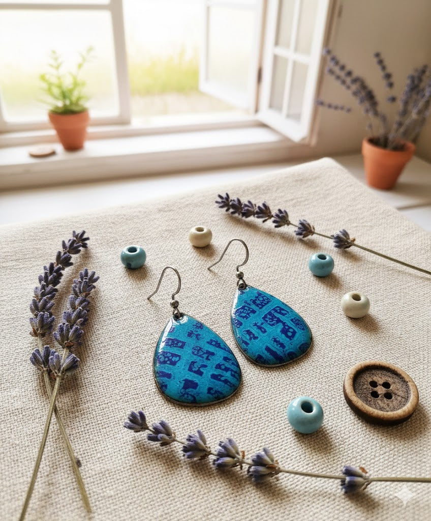 "Azurne Tropfen" – Handgefertigte Emaille-Ohrringe: Die Essenz des Mittelmeers