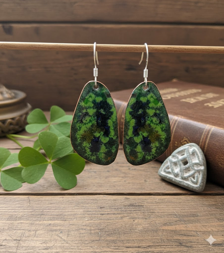 "Elfenhain" – Handgefertigte Emaille-Ohrringe im bezaubernden Irland-Stil