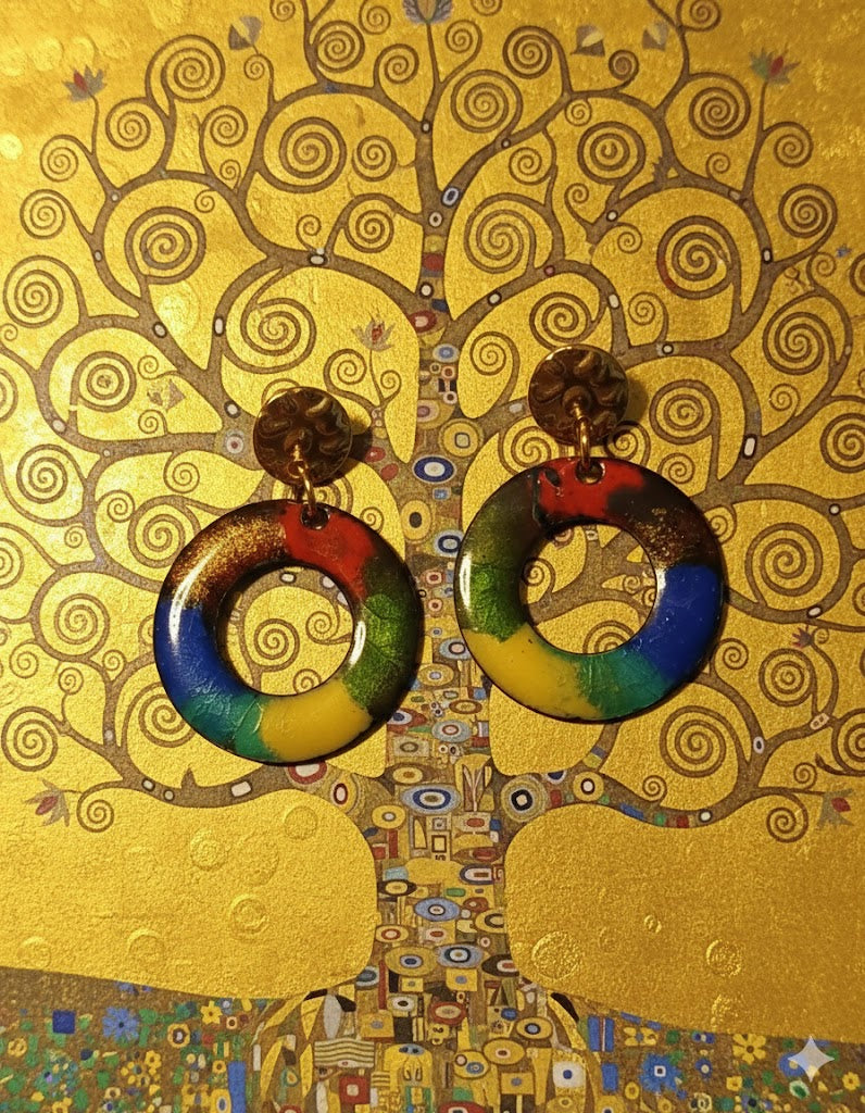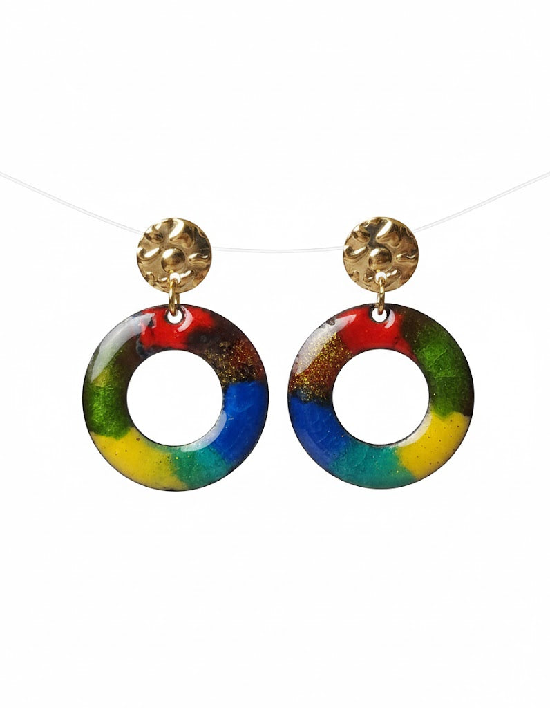 Emaille-Ohrringe "Farbkreis des Lebens" – Farbenfrohes Unikat von Emilia's Emaille