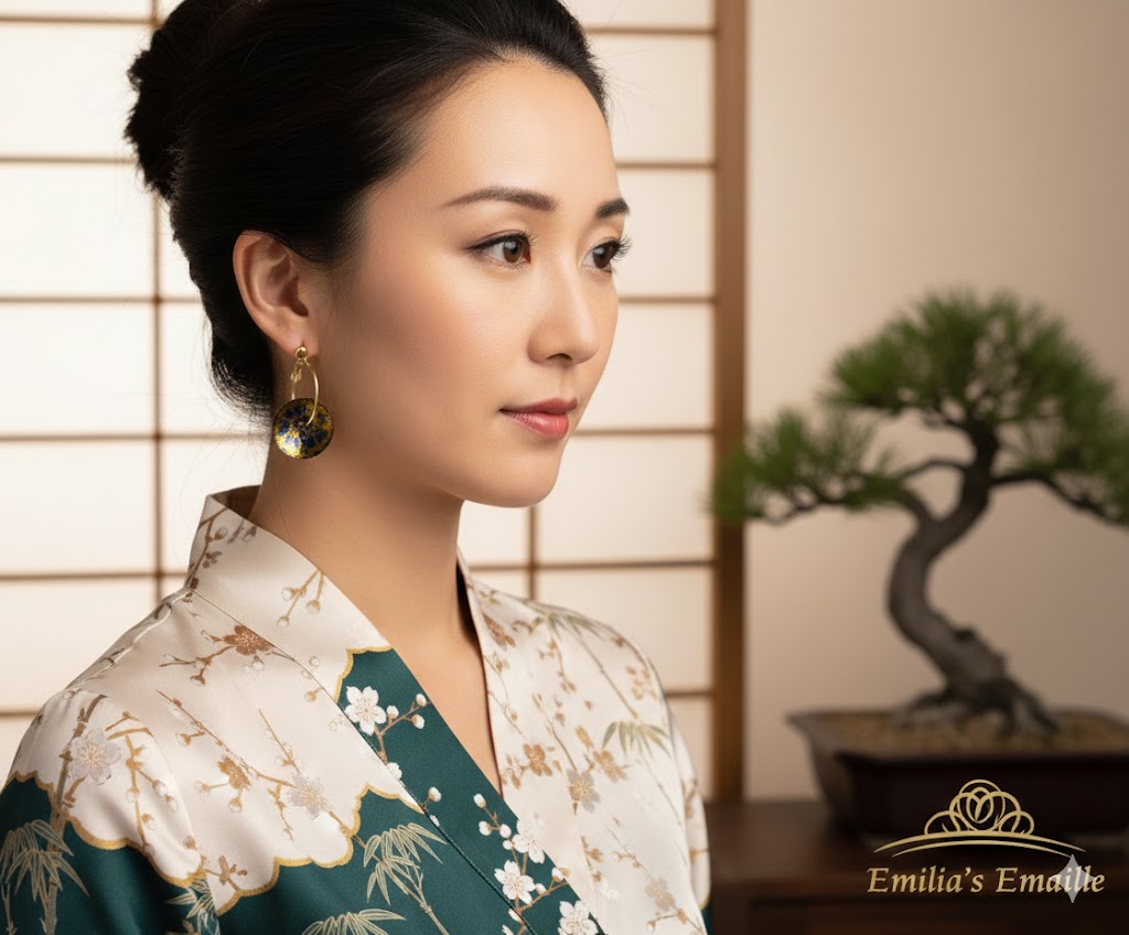 Emaille-Ohrringe "Japanische Nacht"