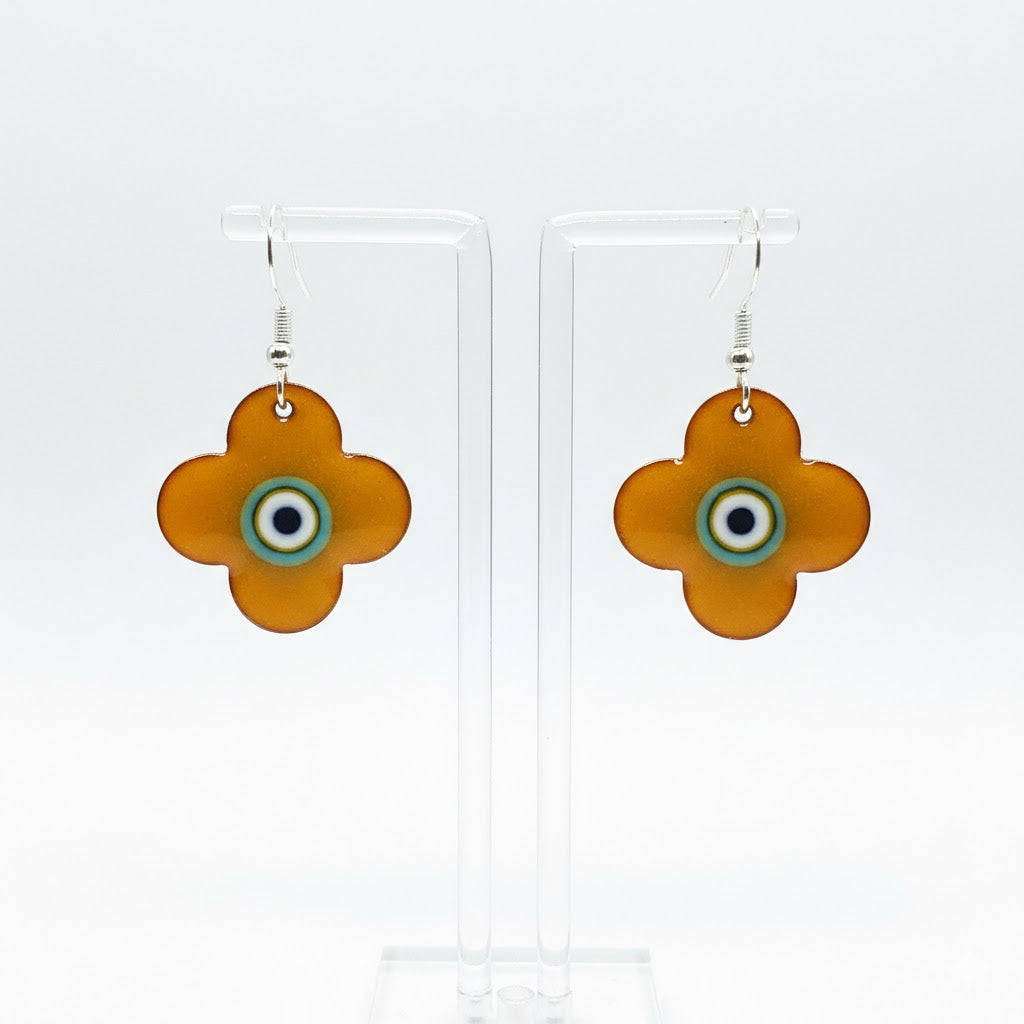 Handgefertigte emaillierte Ohrringe aus Kupfer mit Hacken. Der Ohrring hat eine Gesamtlänge von 3,5 cm