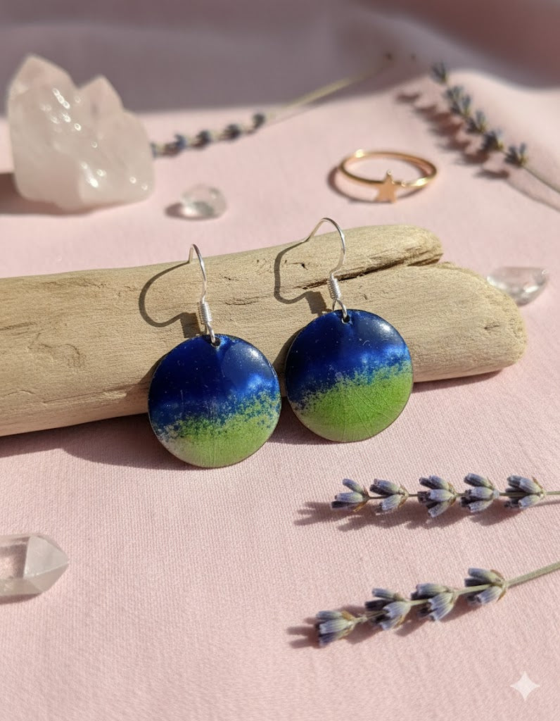 Emaille-Ohrringe "Ozean & Erde" – Unikat von Emilia's Emaille