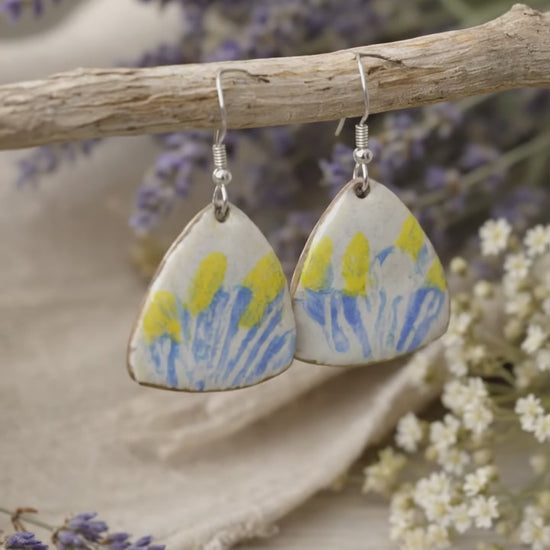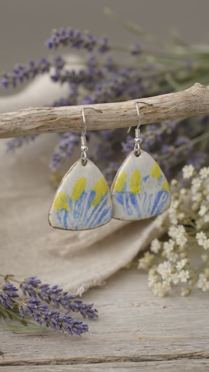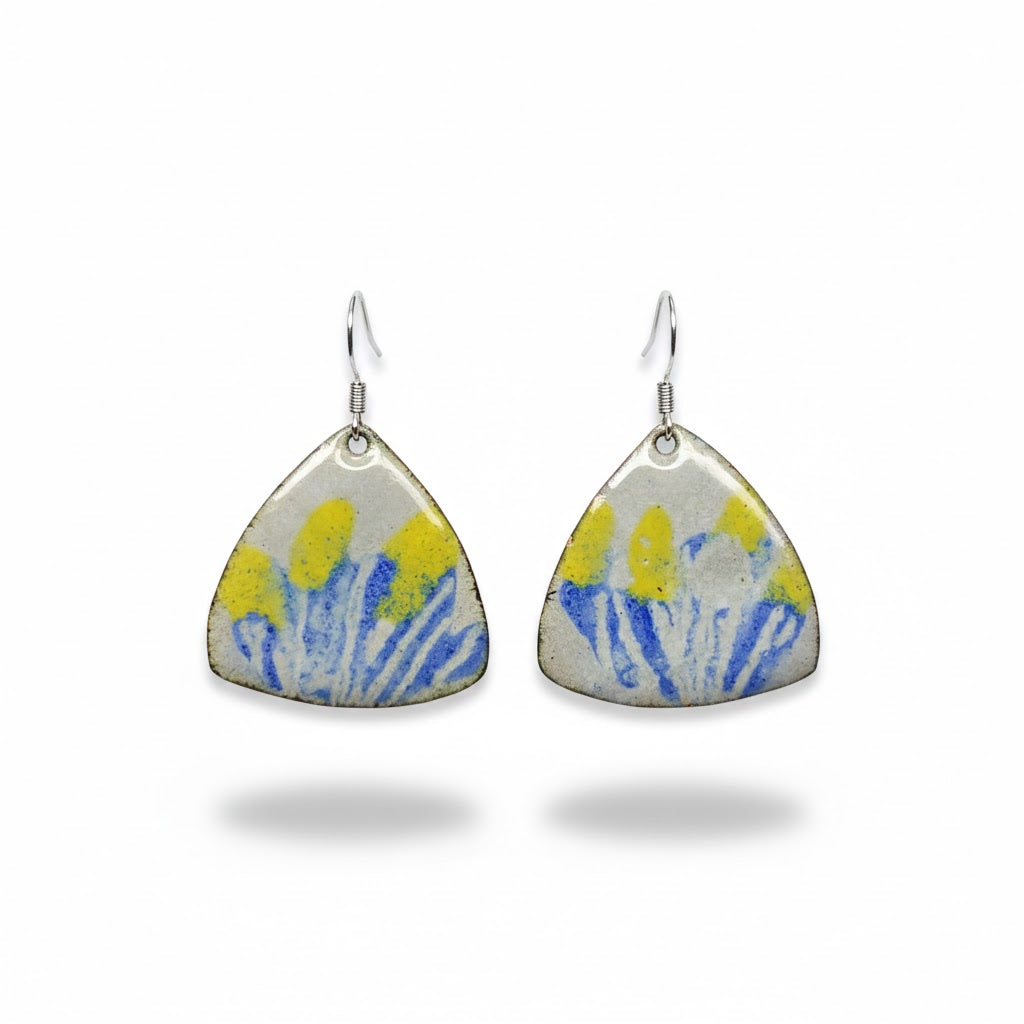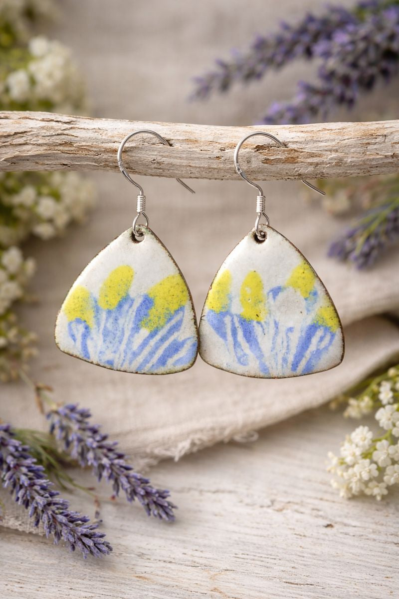Handgefertigte Emaille-Ohrringe "Provenzalische Brise" – Künstlerische Dreiecksform