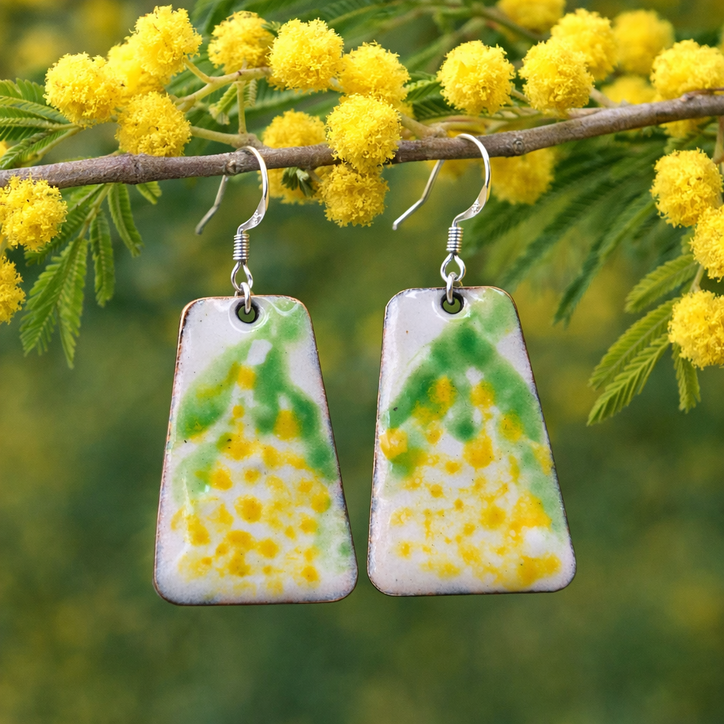 Handgefertigte Emaille-Ohrringe "Mimosenzauber" – Einzigartige Schmuckkunst