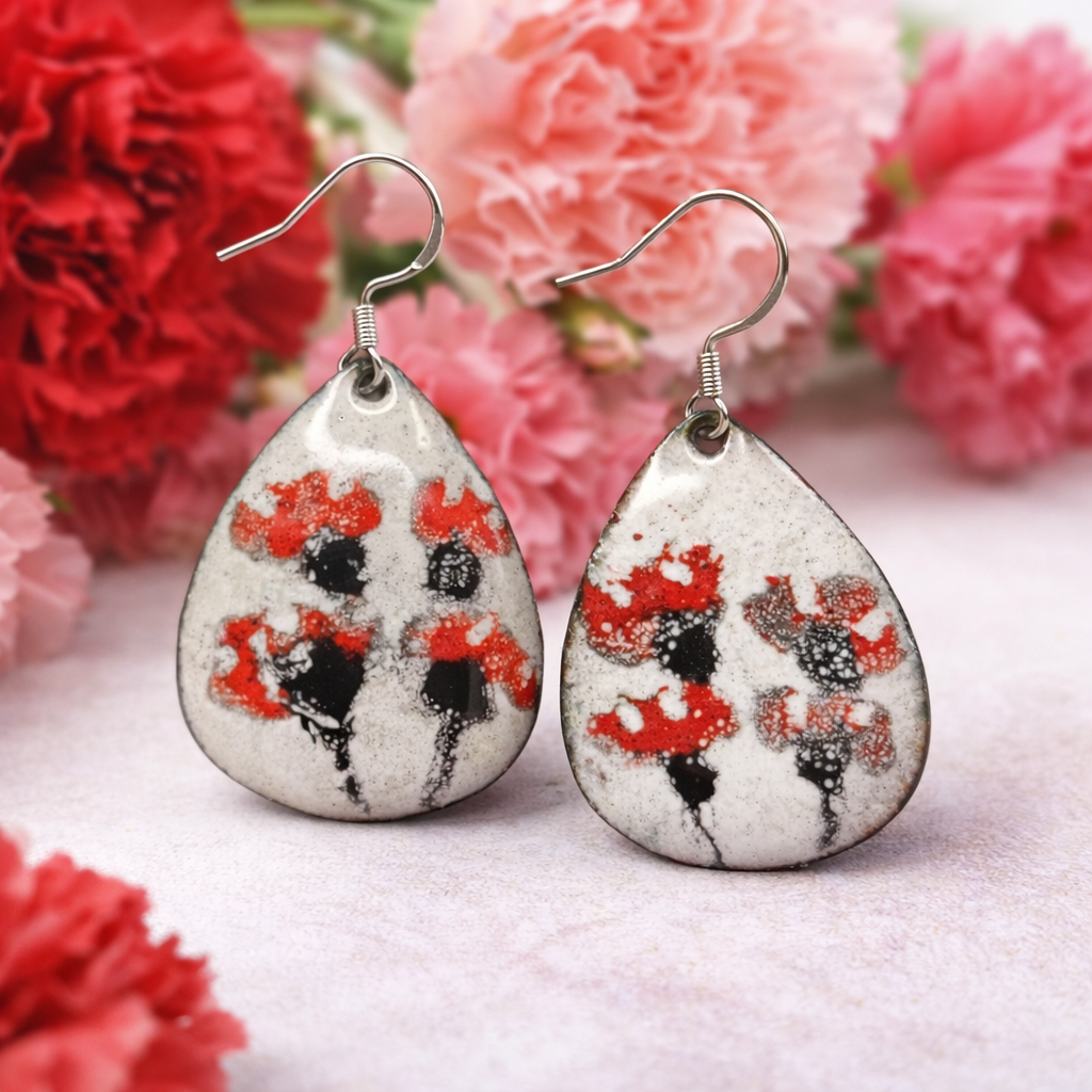 Titel: Handgefertigte Emaille-Ohrringe "Nelkenzauber" – Zeitlose florale Kunst