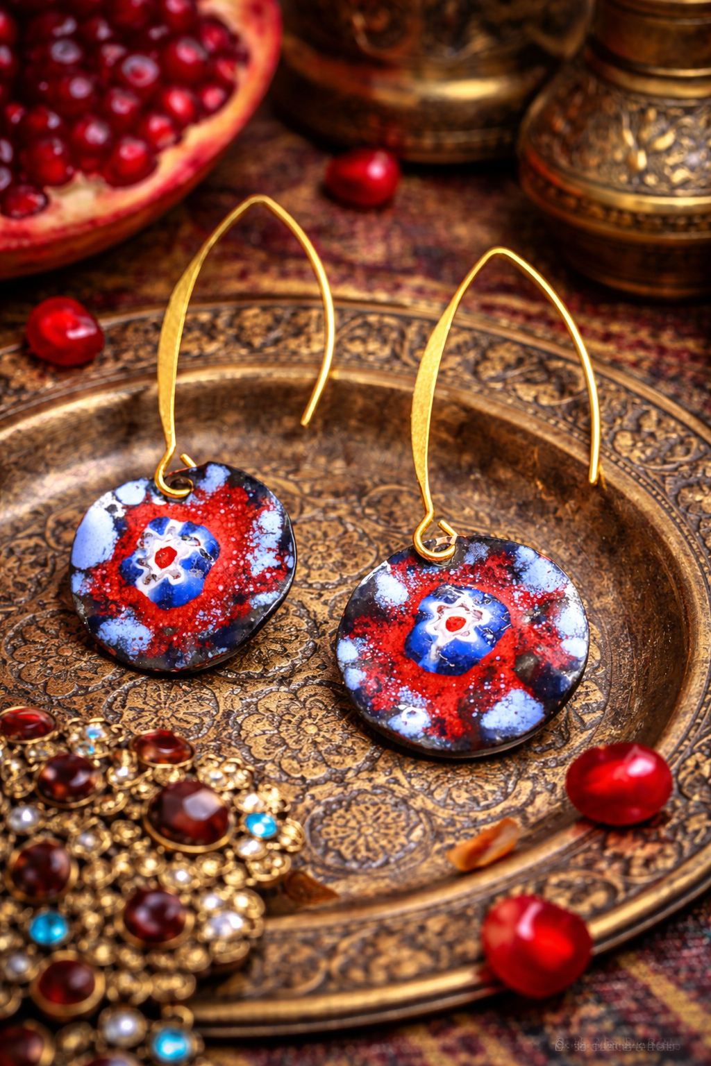 "Kaukasisches Feuer" – Handgefertigte Emaille-Ohrringe im georgischen Stil