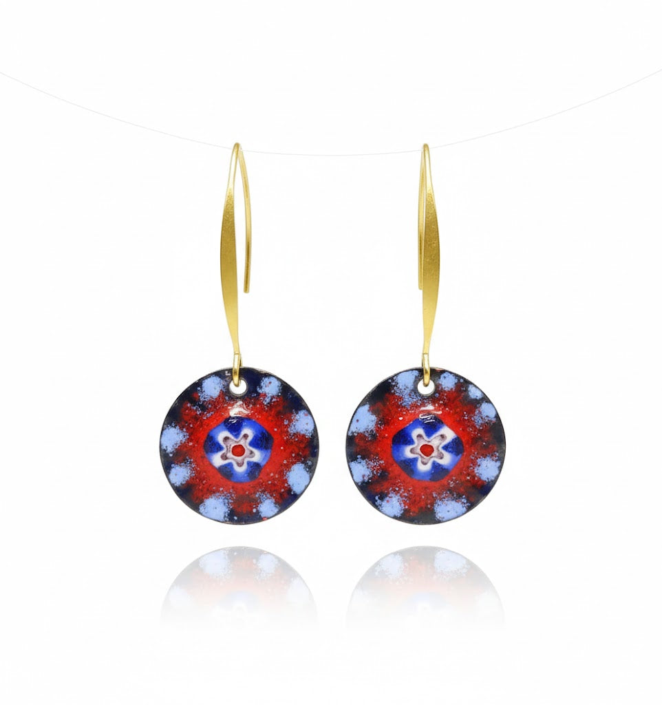 Material: Echte Feuer-Emaille auf Metall, edle goldfarbene Ohrhaken (Nieren-Form).