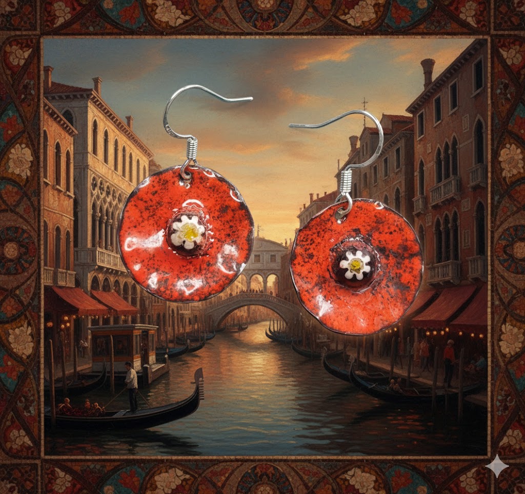 Diese Schmuckstücke sind mehr als nur Accessoires; sie sind kleine Kunstwerke. Die harmonische Kombination aus lebendigen Farben und verspielten Formen erinnert an die glitzernden Kanäle und die historischen Palazzi Venedigs.